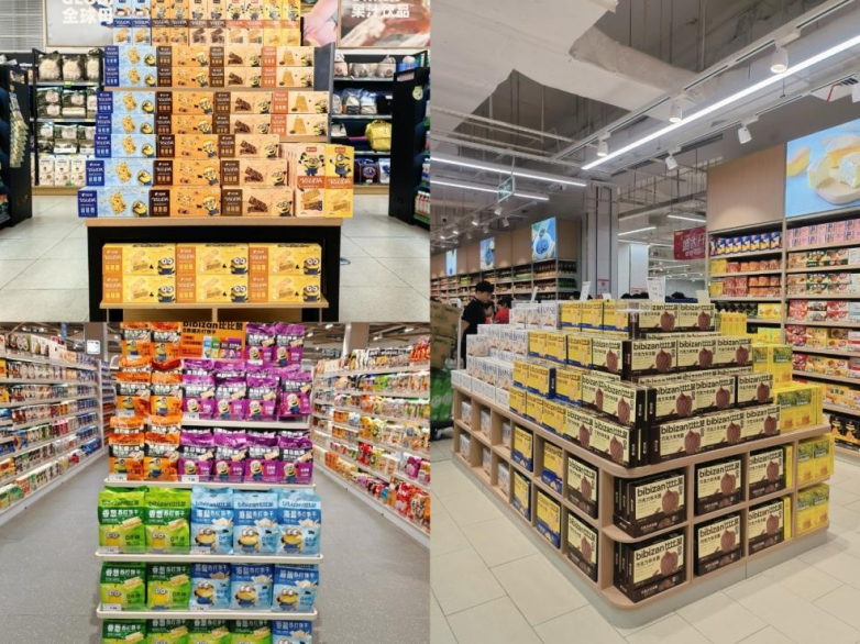 在IP合作领域,品牌与小黄人、功夫熊猫等全球知名IP携手,打造了萌趣与美味兼具的联名系列产品。以“比比赞×小黄人黄油薄脆饼干”为例,产品还原小黄人造型的每个细节,突破了传统工艺中造型与口感难以兼顾的技术壁垒,将萌趣基因与醇香酥脆的风味深度融合,精准覆盖亲子家庭、Z世代及成年家庭消费者三大核心客群。除了IP赋能,比比赞还通过了朴朴、沃尔玛等渠道的严格验厂,其生产管理体系获得顶级零售端的高度认可。